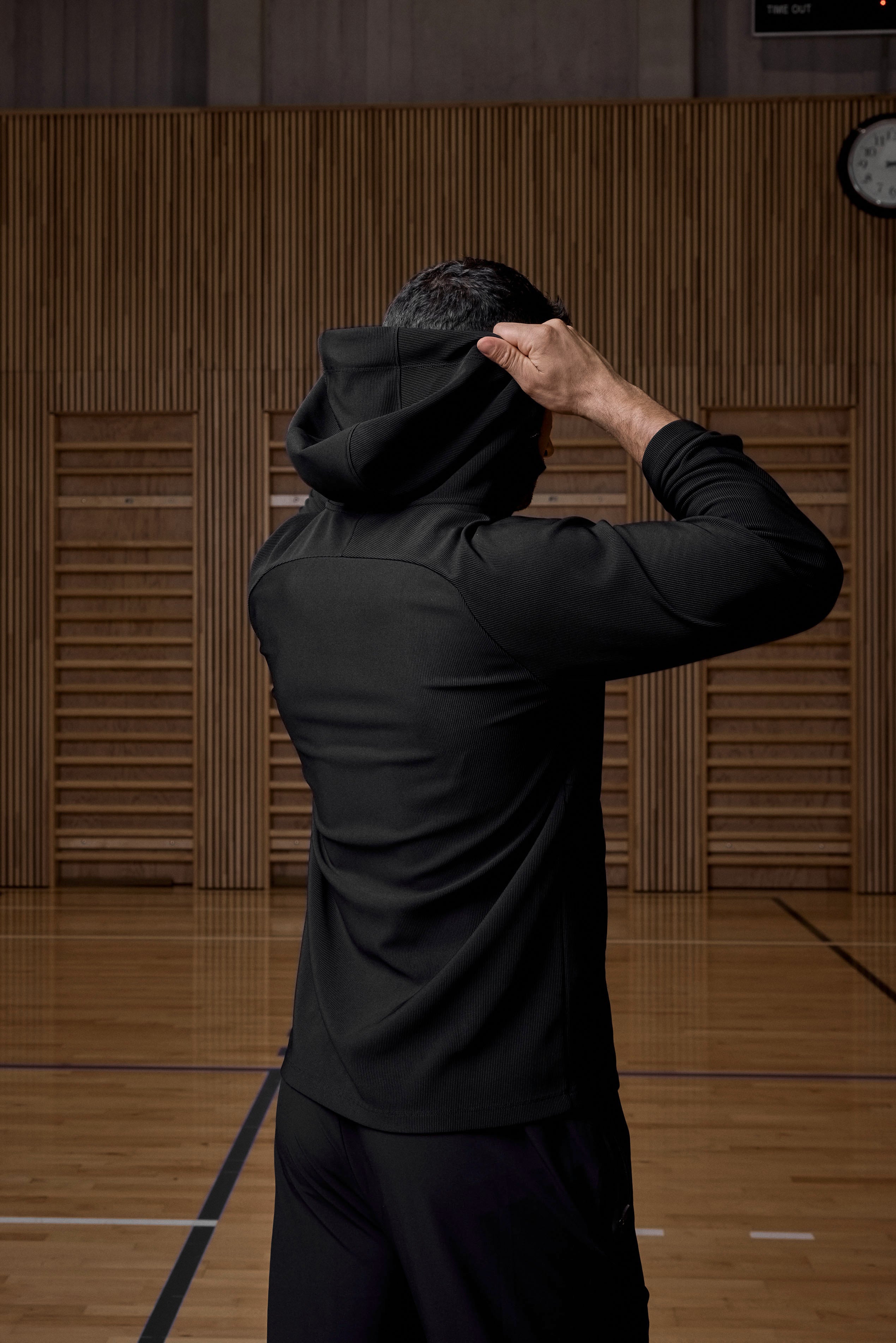 Táto mikina na zips je tvojou voľbou na chladné dni – ideálna na beh, tréning alebo športový outfit. Priedušný materiál pomáha regulovať telesnú teplotu, zatiaľ čo otvory na palce a kapucňa pridávajú extra komfort a krytie.